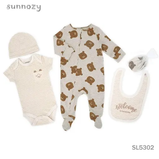 ست ۵ تکه لباس نوزادی، مجموعهای کامل برای راحتی و محافظت نوزاد فراهم میکند. این ست شامل سرهمی، بادی یا زیرمامی، کلاه، پیشبند و دستکش است و از جنس نرم و ضد حساسیت تهیه شده است. طراحی آن برای راحتی نوزاد و سهولت استفاده والدین مناسب بوده و گزینهای عالی برای روزمره و خانه محسوب میشود.